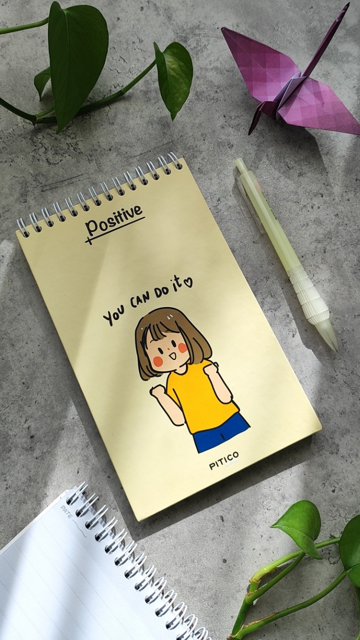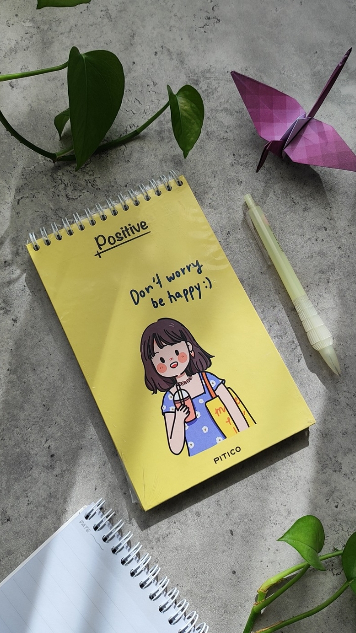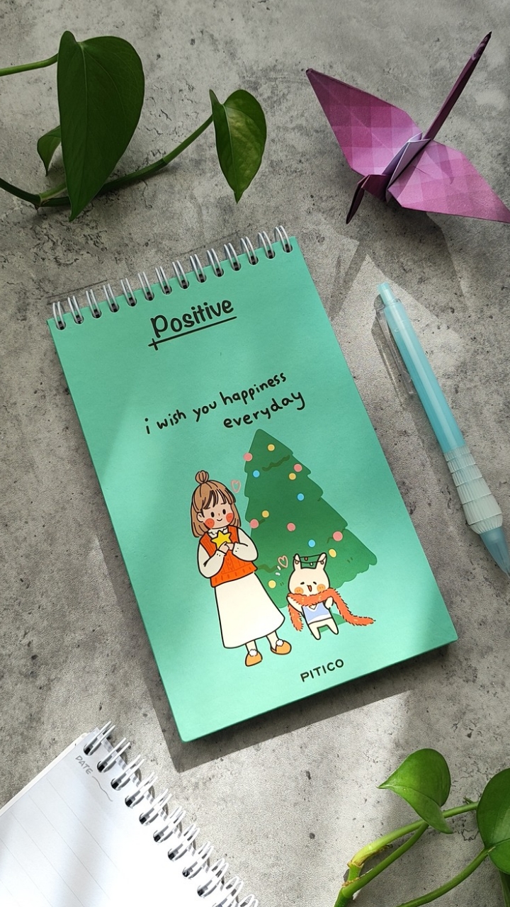 دفترچه یادداشت سری Positive 📓 فنر از بالا، جلد سخت و مقاوم؛ مناسب برای نوشتن یادداشتهای روزانه.