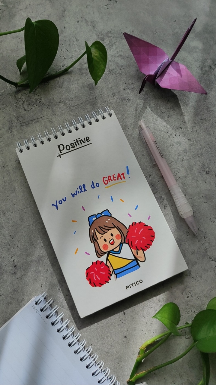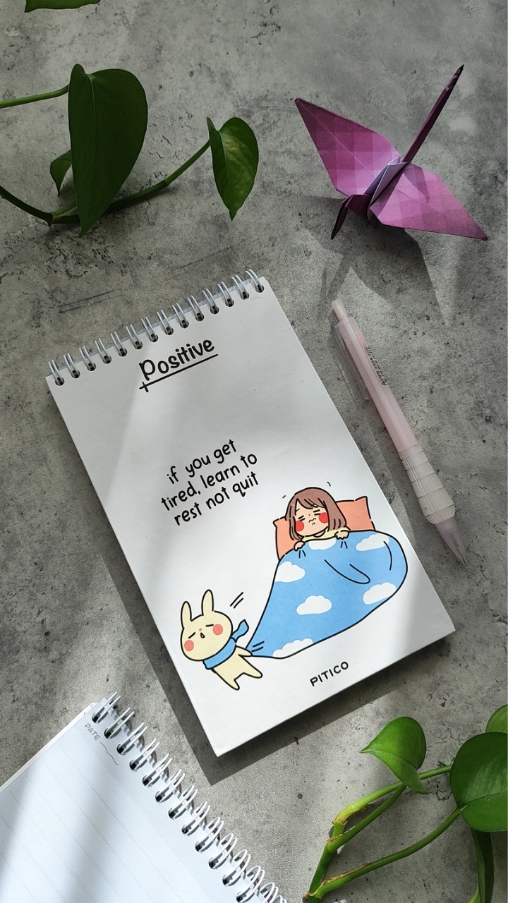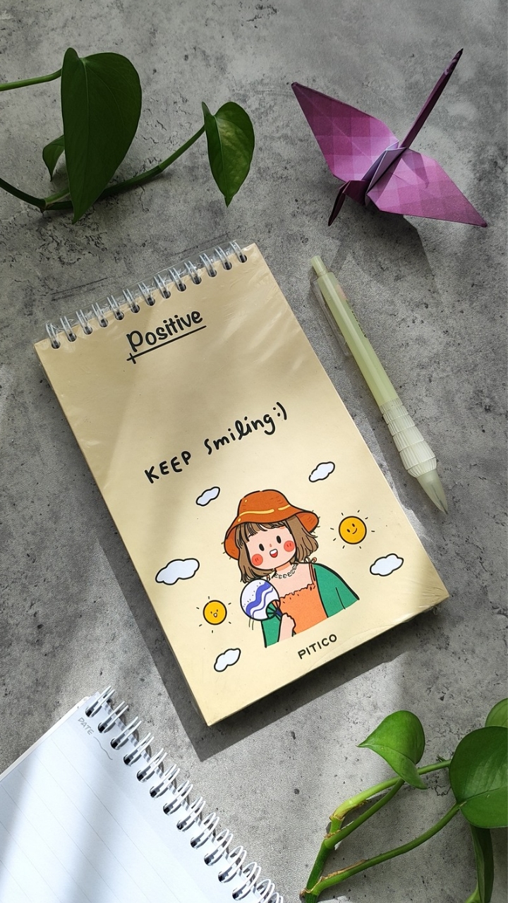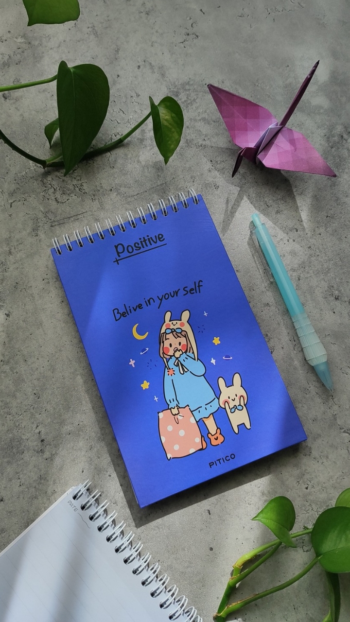 دفترچه یادداشت سری Positive 📓 فنر از بالا، جلد سخت و مقاوم؛ مناسب برای نوشتن یادداشتهای روزانه.