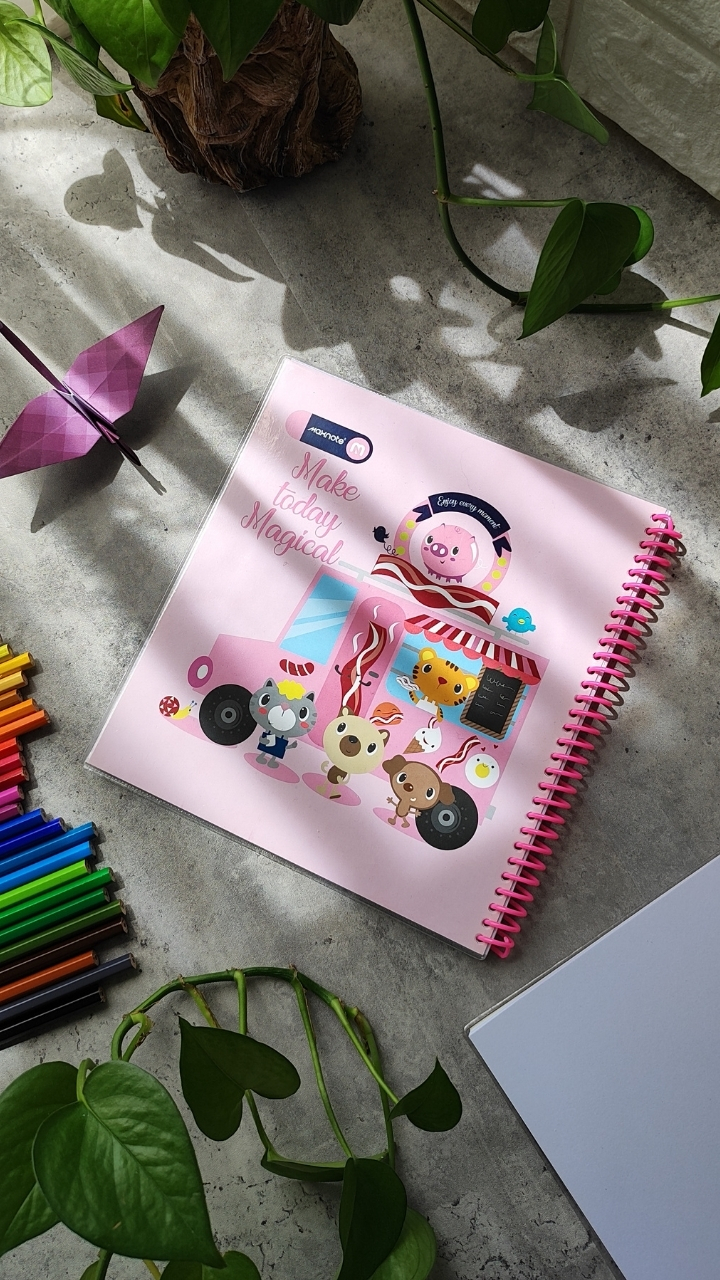 این دفتر نقاشی مربعی سیمی یه همراه عالی برای همه هنرمندان کوچولوه 🎨✨